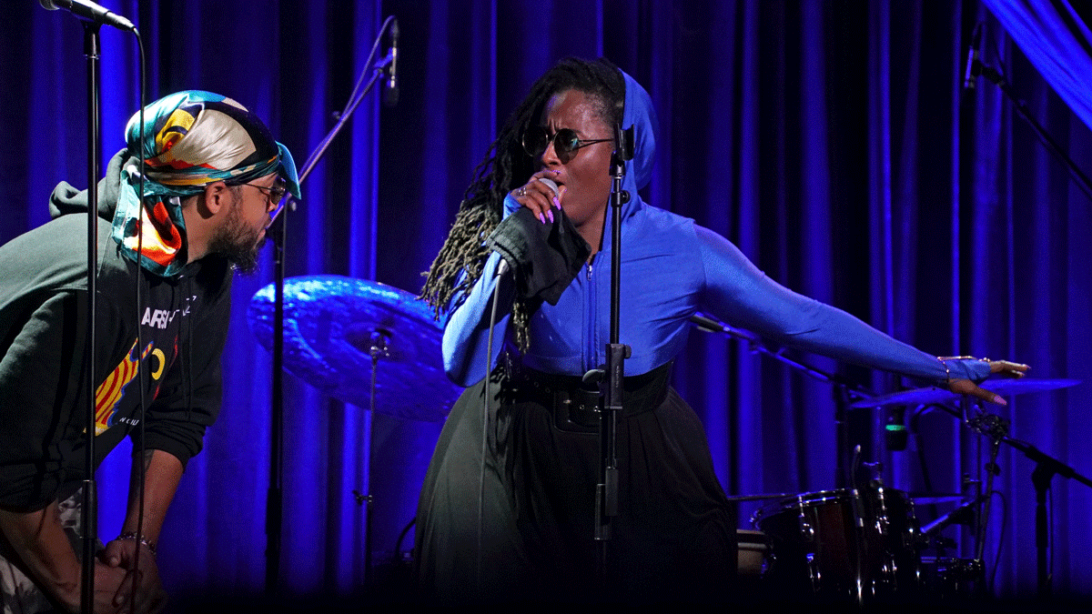 A special surprise came with the arrival of the “Holy Ghost-Note Singers”: Ahrel Lumzy and Treena Ferebee. Lumzy, is known for his work with D’Angelo and The Vanguard. He led a high-energy, spirit-soaked rendition of the gospel classic “Rise Up and Walk.” His smooth tenor glided effortlessly over Searight’s driving drums.