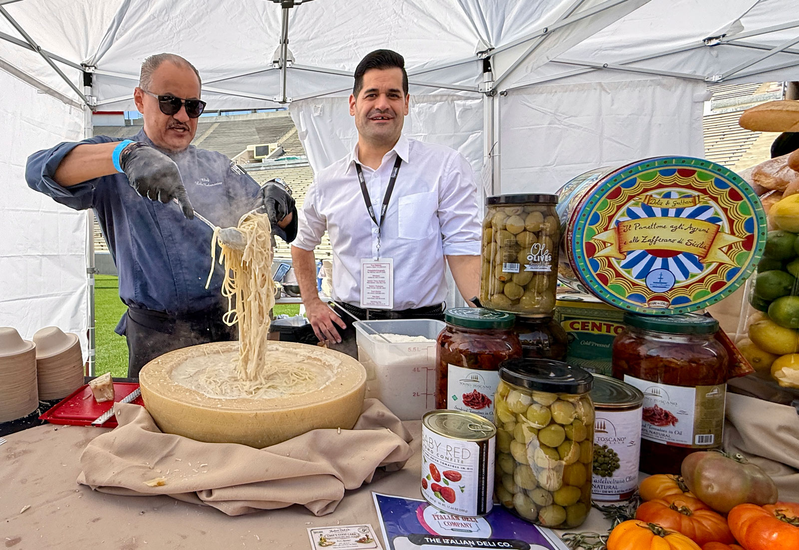 This year’s event felt even more celebratory than ever. Of course, that could have been, because last year’s event was canceled due to the 2025 LA fires. The crowds that came out for 2026 was unprecedented. Entire families attended and groups of friends gathered to partake in this festive day of culinary diversity. Despite the increase in attendees, workers with “Eat More, Give More” t-shirts, were there to answer questions and help keep things running smoothly. Prior to approaching the field, the entry corridor (the Court of Champions) was lined with a fabulous assortment of food trucks. I knew I had to pace myself, but my husband grabbed several bites from Thai Mex Cocina, Fat Boys, Rice Balls of Fire as well as RicoRico Snack Bar